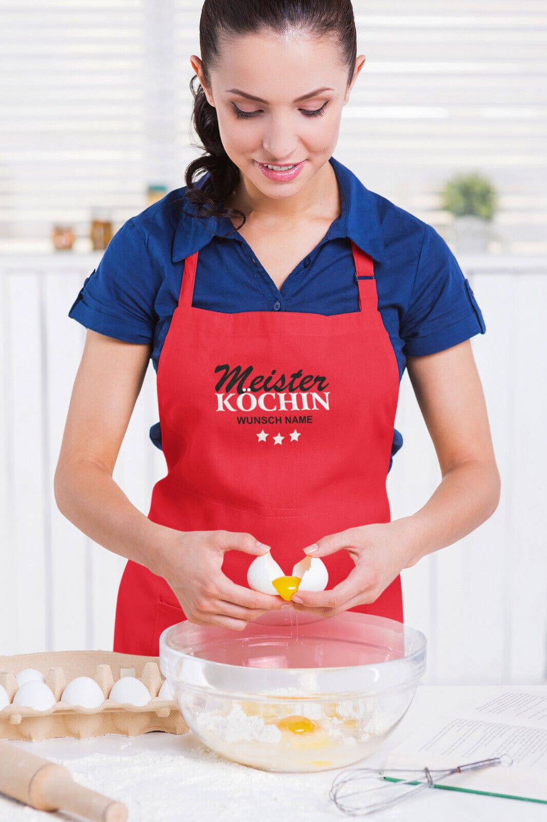Bestelle noch heute deine "Meister Köchin" Kochschürze mit Wunschnamen und zeige allen, dass du die Küchenkönigin bist. Denn wenn die Meister Köchin ruft, sind die Gaumenfreuden nicht weit entfernt!