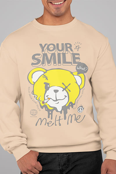 Bestellen Sie noch heute Ihren Herrenpullover mit "Your Smile Melt Me" Front Print und setzen Sie ein Zeichen für Liebe, Zärtlichkeit und emotionale Verbindung. Zeigen Sie, dass Mode nicht nur Komfort, sondern auch eine Form von positiven Gefühlen und Ausdruck von Zuneigung sein kann.