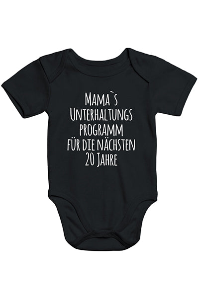 Begleite dein Baby auf seinen ersten Abenteuern mit unserem hochwertigen Baby Body und dem unterhaltsamen Aufdruck "Mamas Unterhaltungsprogramm" – für glückliche Momente und umweltbewusste Kleidung von Anfang an!