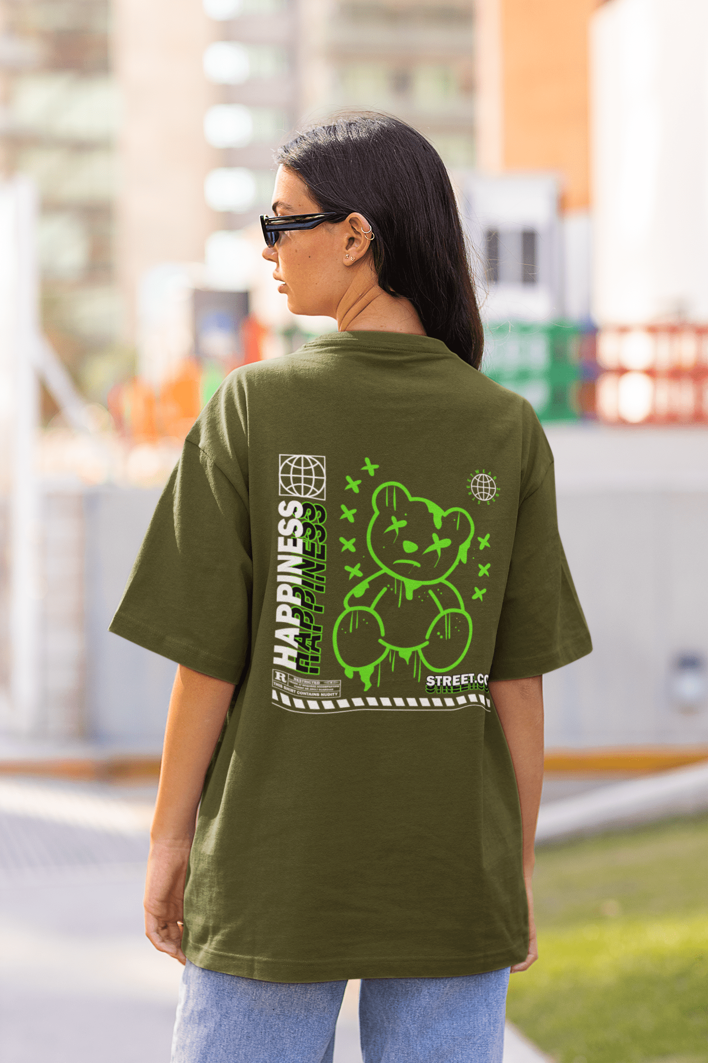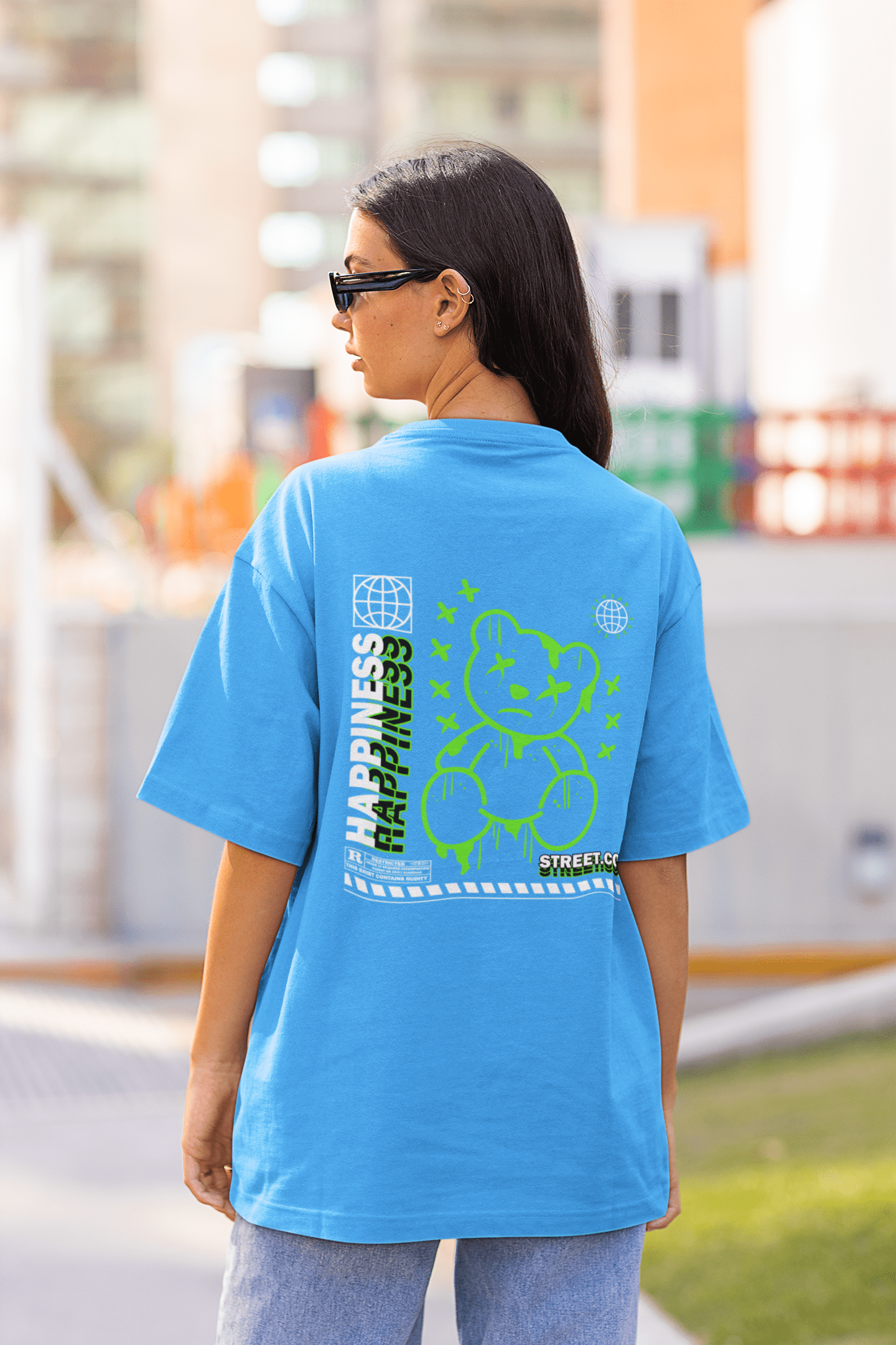 Bestellen Sie noch heute Ihr Damen Oversize Shirt mit "Happiness" Back Print und setzen Sie ein Zeichen für positive Energie und urbanen Stil. Zeigen Sie, dass Mode nicht nur Komfort, sondern auch eine Form von Selbstausdruck und fröhlicher Lebensphilosophie sein kann.