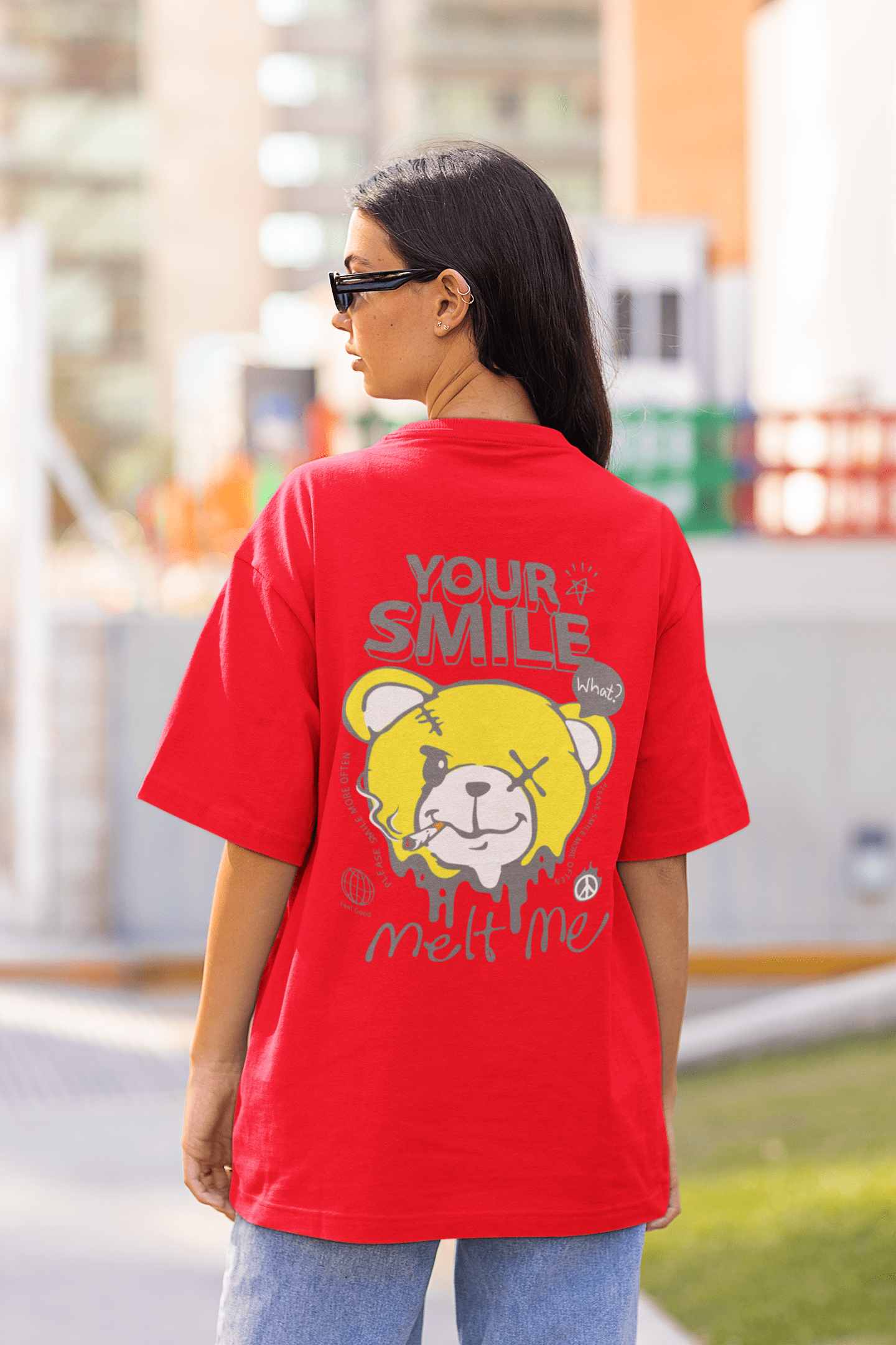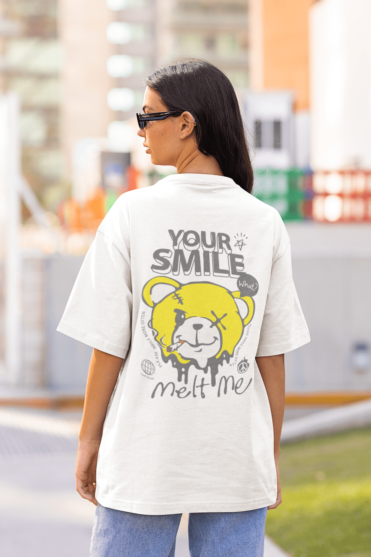Bestellen Sie noch heute Ihr Damen Oversize Shirt mit "Your Smile Melt Me" Back Print und setzen Sie ein Zeichen für Romantik und Liebe. Zeigen Sie, dass Mode nicht nur Komfort, sondern auch eine Form von emotionalem Ausdruck und positiven Gefühlen sein kann.
