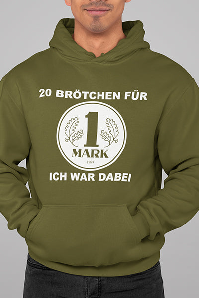 - Hoodie mit dem nostalgischen Aufdruck "20 Brötchen für 1 Mark - Ich war dabei".
