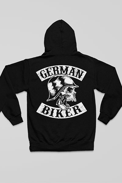 Mit diesem Hoodie zeigst du deine Zugehörigkeit zur Biker-Gemeinschaft und zu deutschen Motorradclubs. Der Schriftzug "German Biker MC" ist ein stolzer Ausdruck deiner Identität als deutscher Biker.