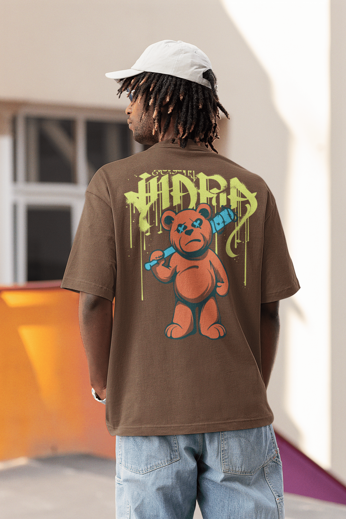 Bestellen Sie noch heute Ihr Herren Oversize Shirt mit "Bär mit Schläger" Back Print und setzen Sie ein Statement, dass Mode nicht nur Komfort, sondern auch eine Form von Selbstausdruck und Persönlichkeit ist. Beachten Sie jedoch, dass die Interpretation von Grafiken subjektiv ist und unterschiedliche Meinungen hervorrufen kann.