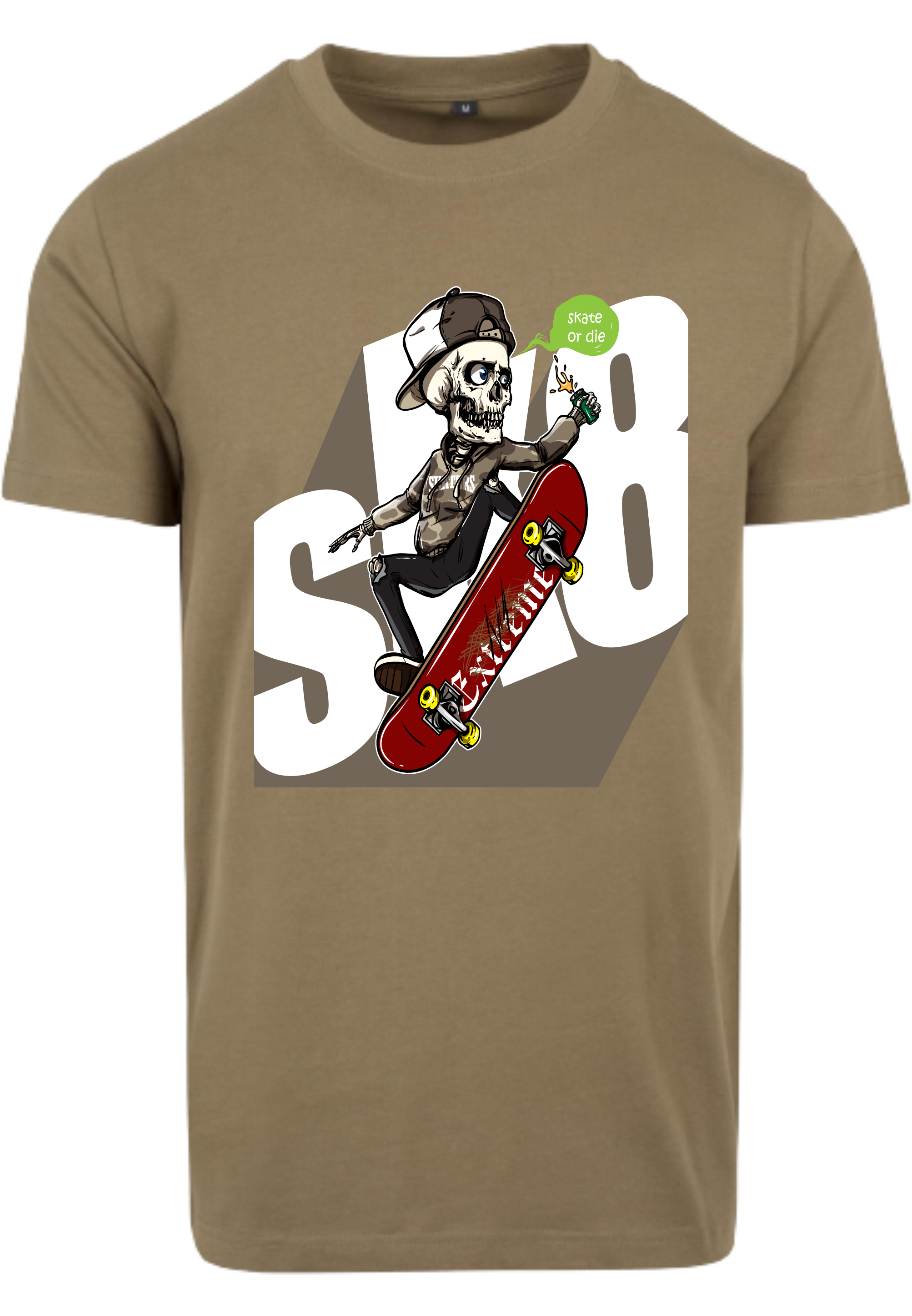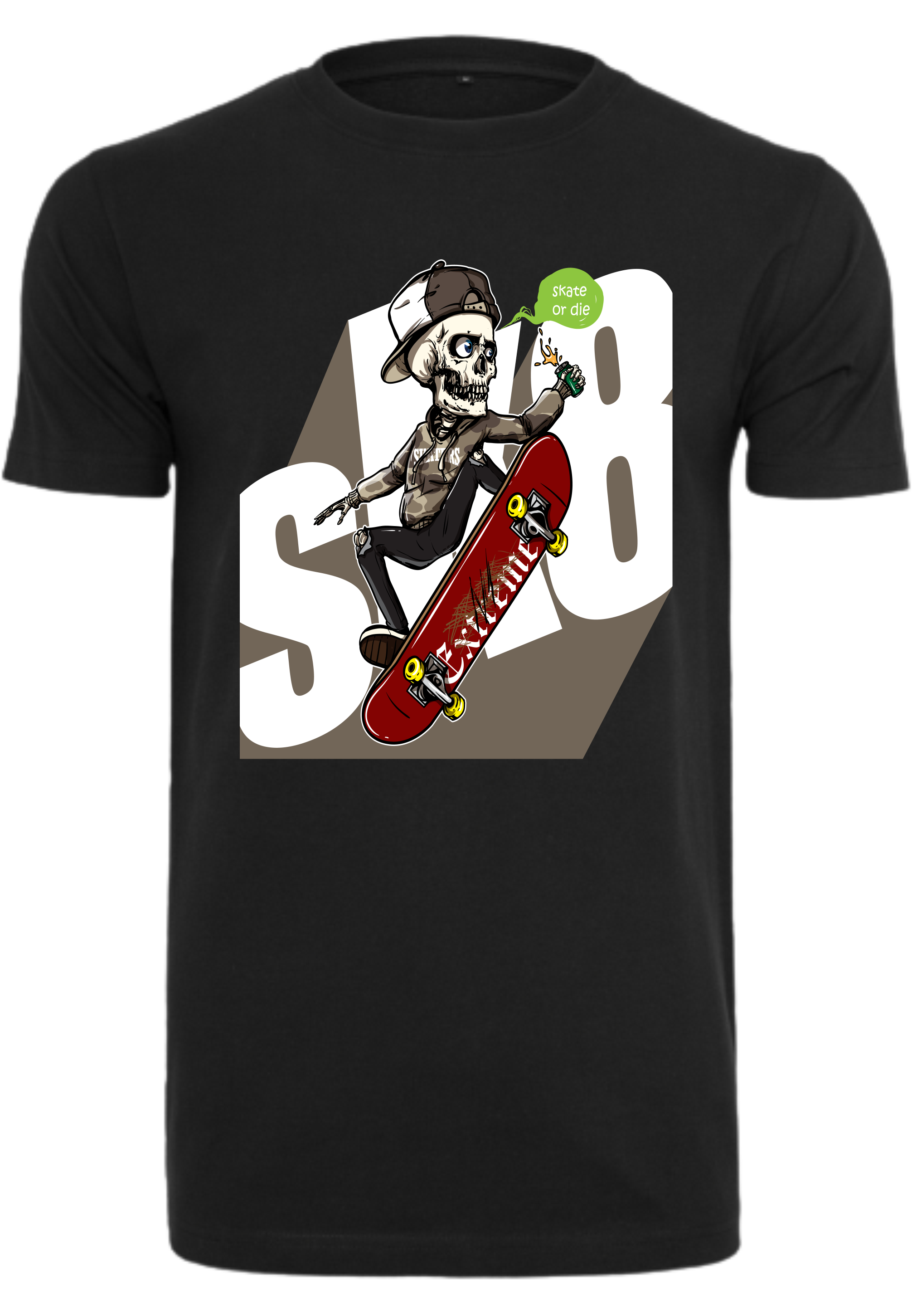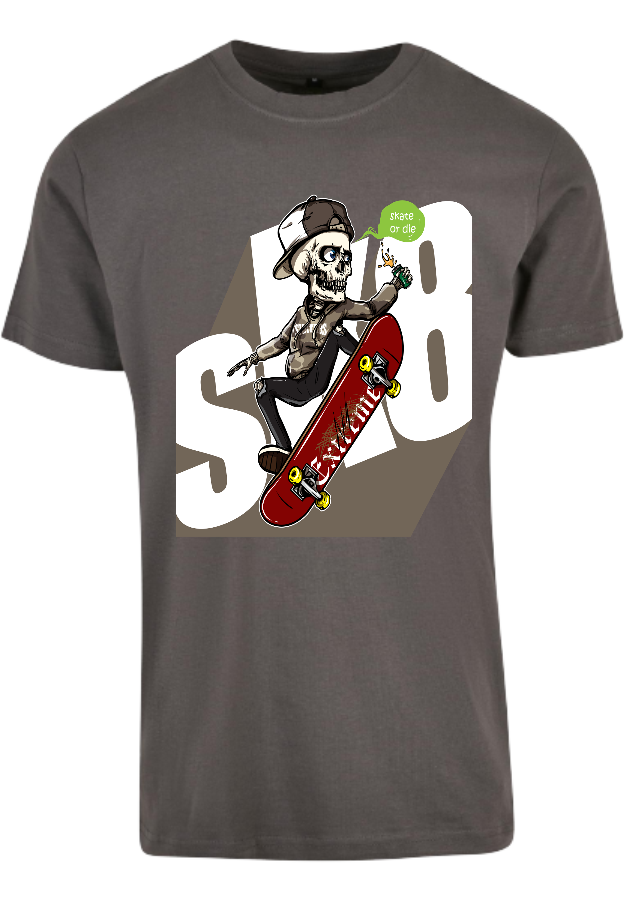 Einzigartiger Aufdruck: Das T-Shirt ist mit einem auffälligen Skelett-Skater-Aufdruck verziert, der die Leidenschaft für das Skateboarden und den urbanen Lifestyle symbolisiert.