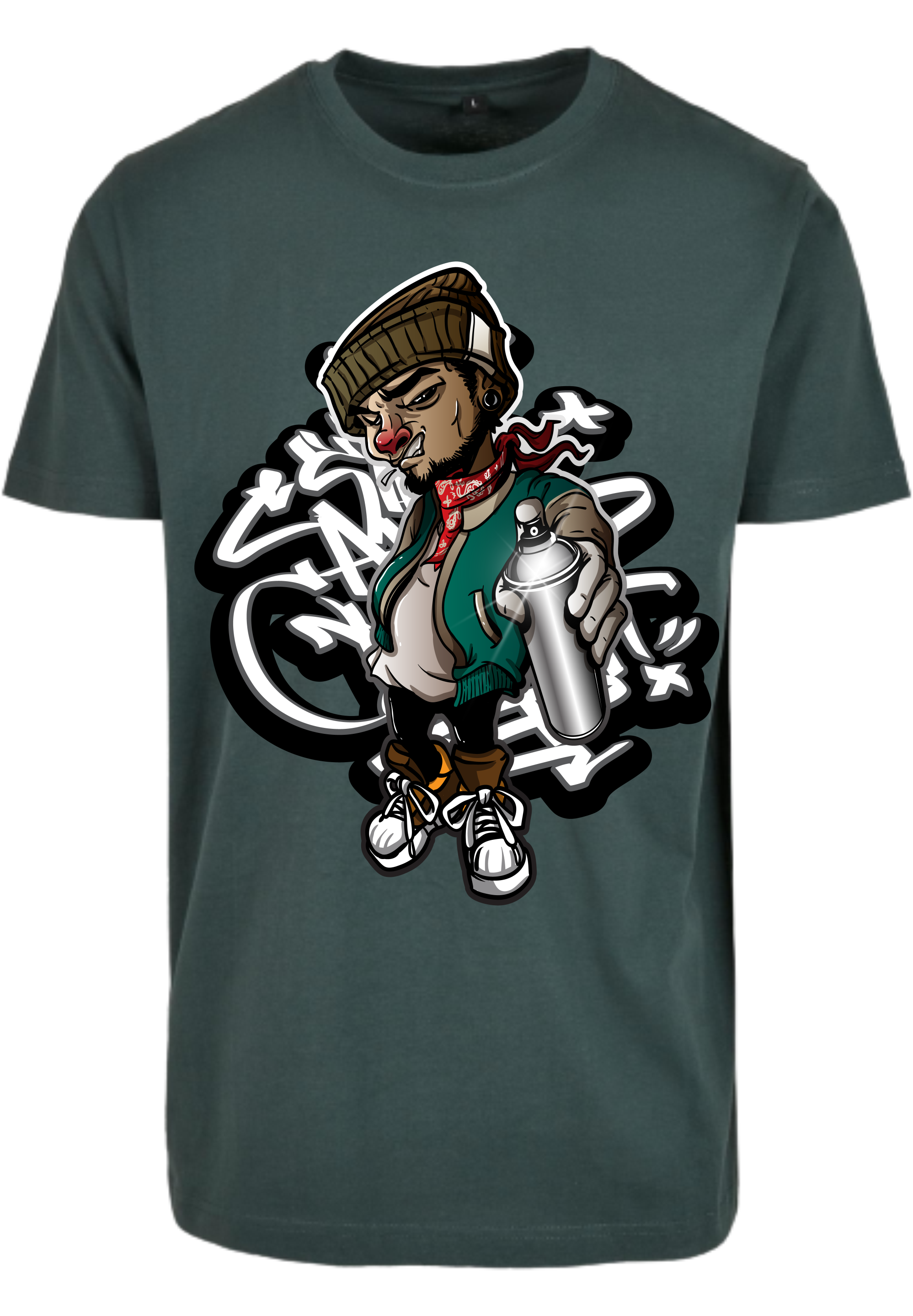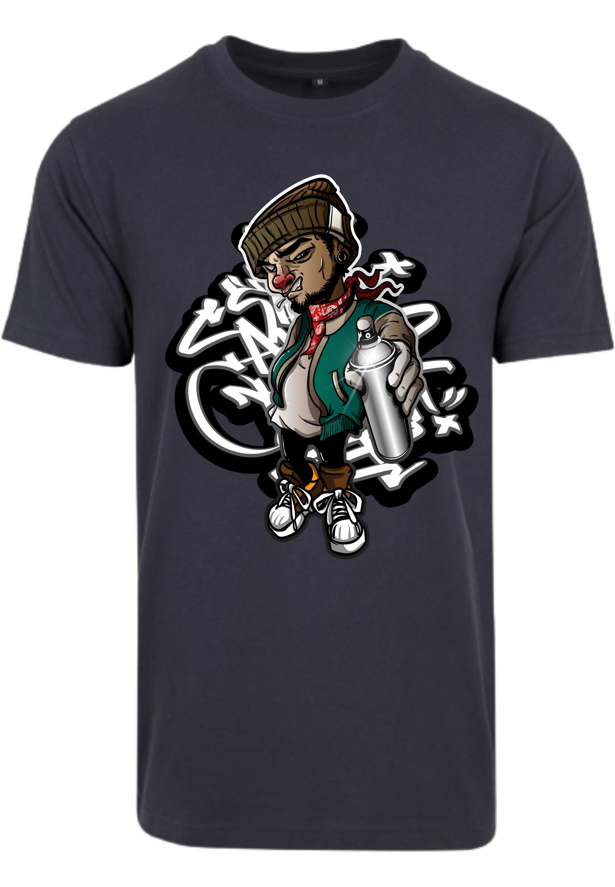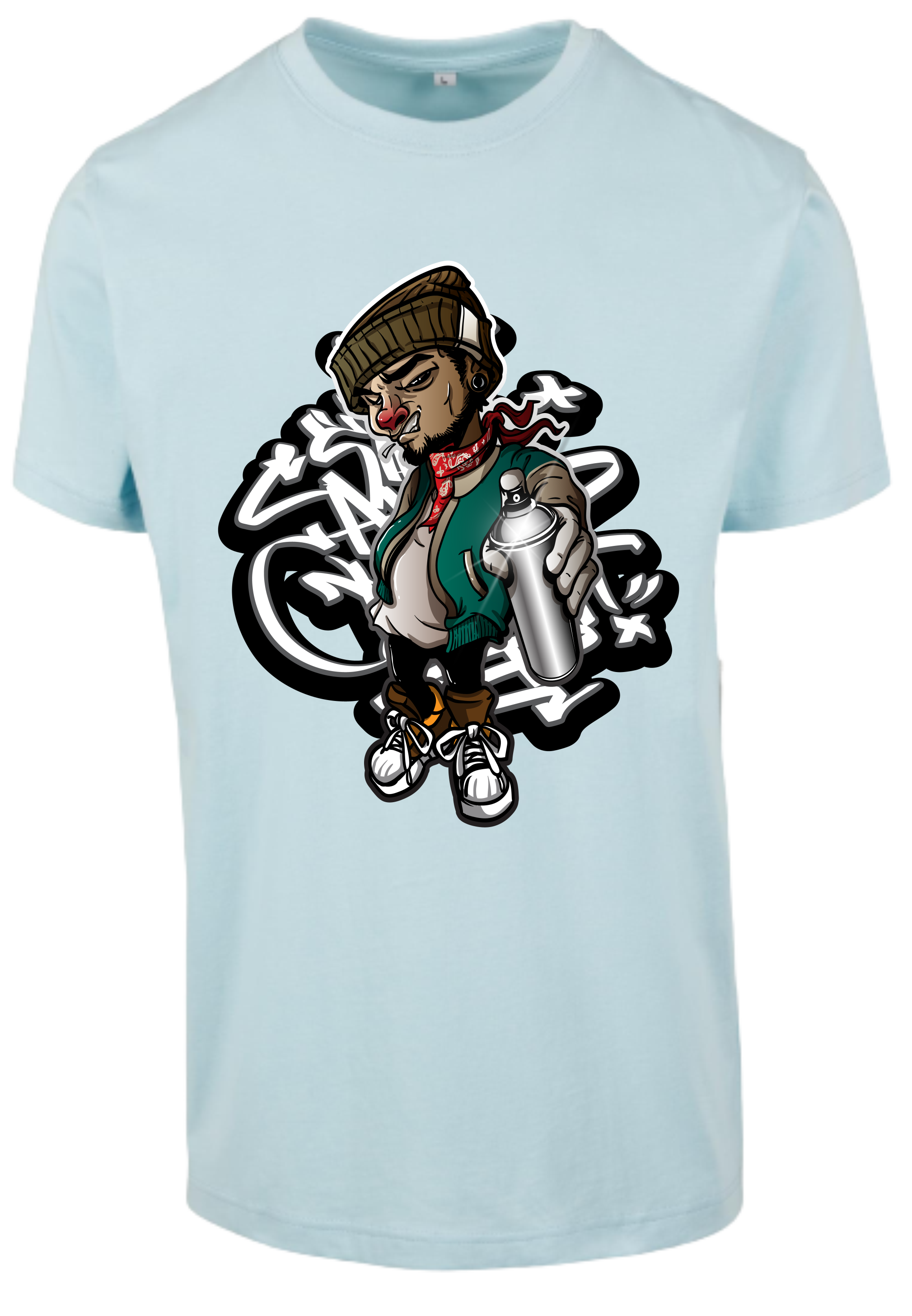 Mit unserem Herren T-Shirt mit Graffiti-Sprayer Aufdruck können Sie Ihre Leidenschaft für Straßenkunst und kreativen Ausdruck zur Schau stellen. Bestellen Sie jetzt und bringen Sie Ihre individuelle Note in Ihre Streetwear-Kollektion!