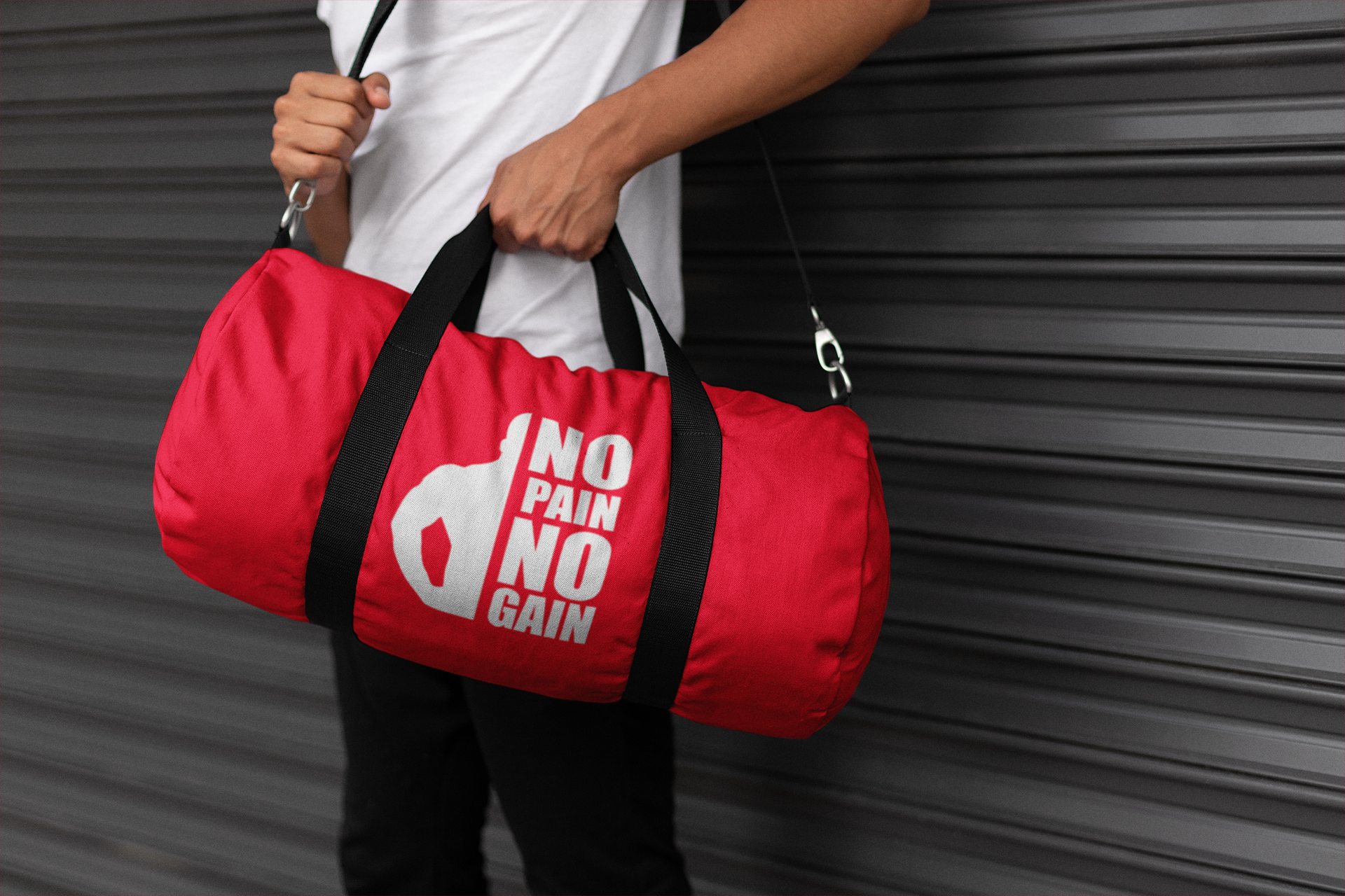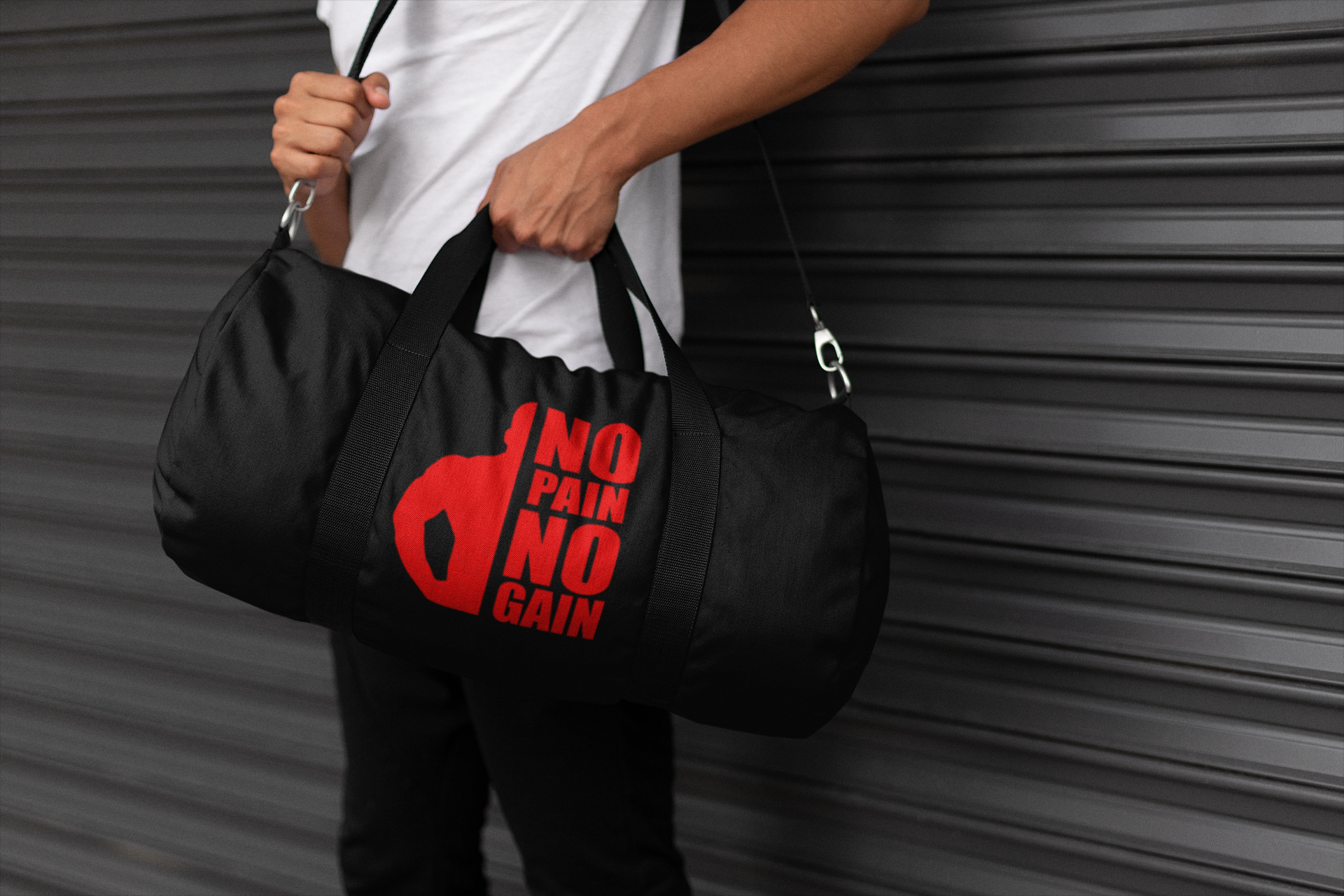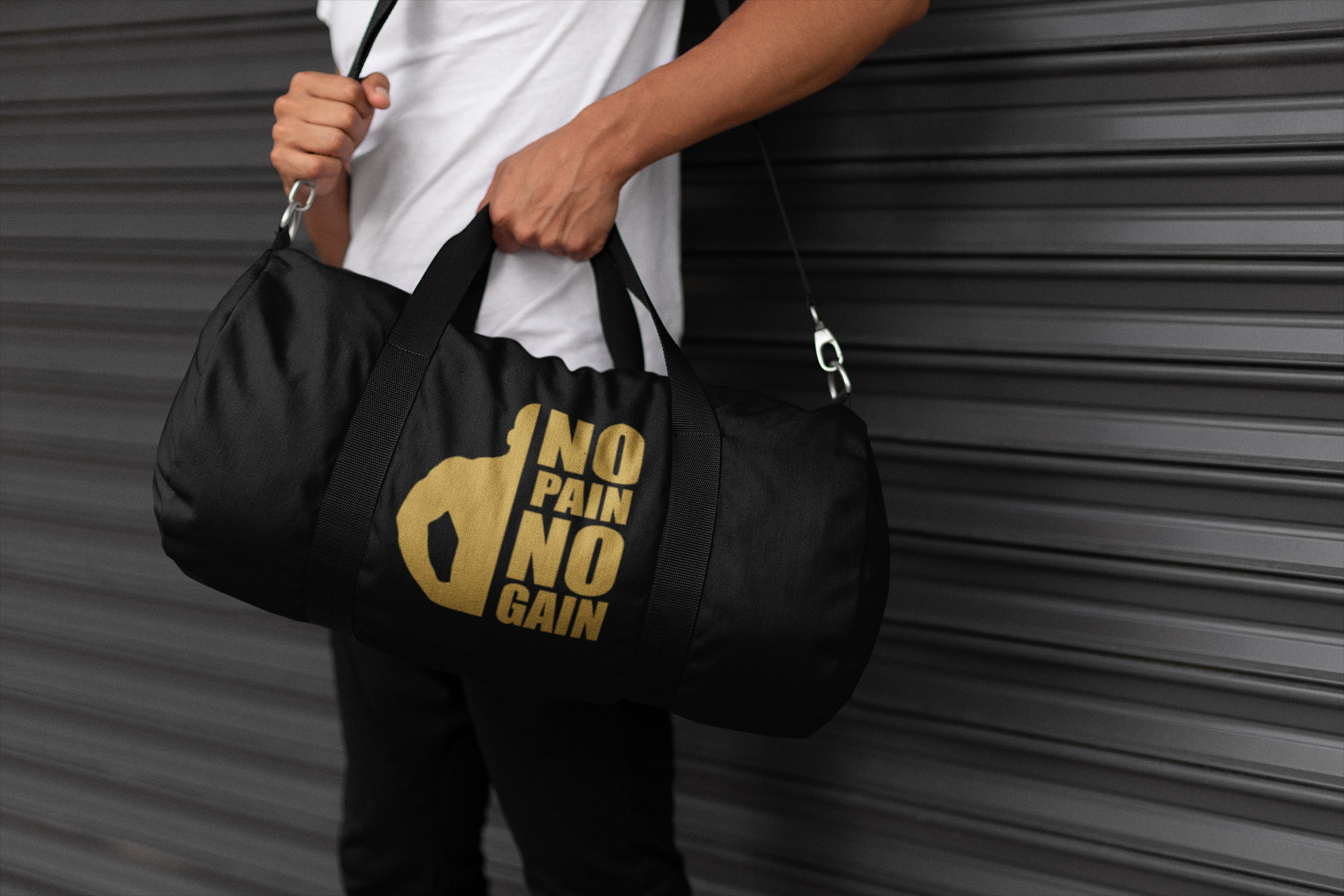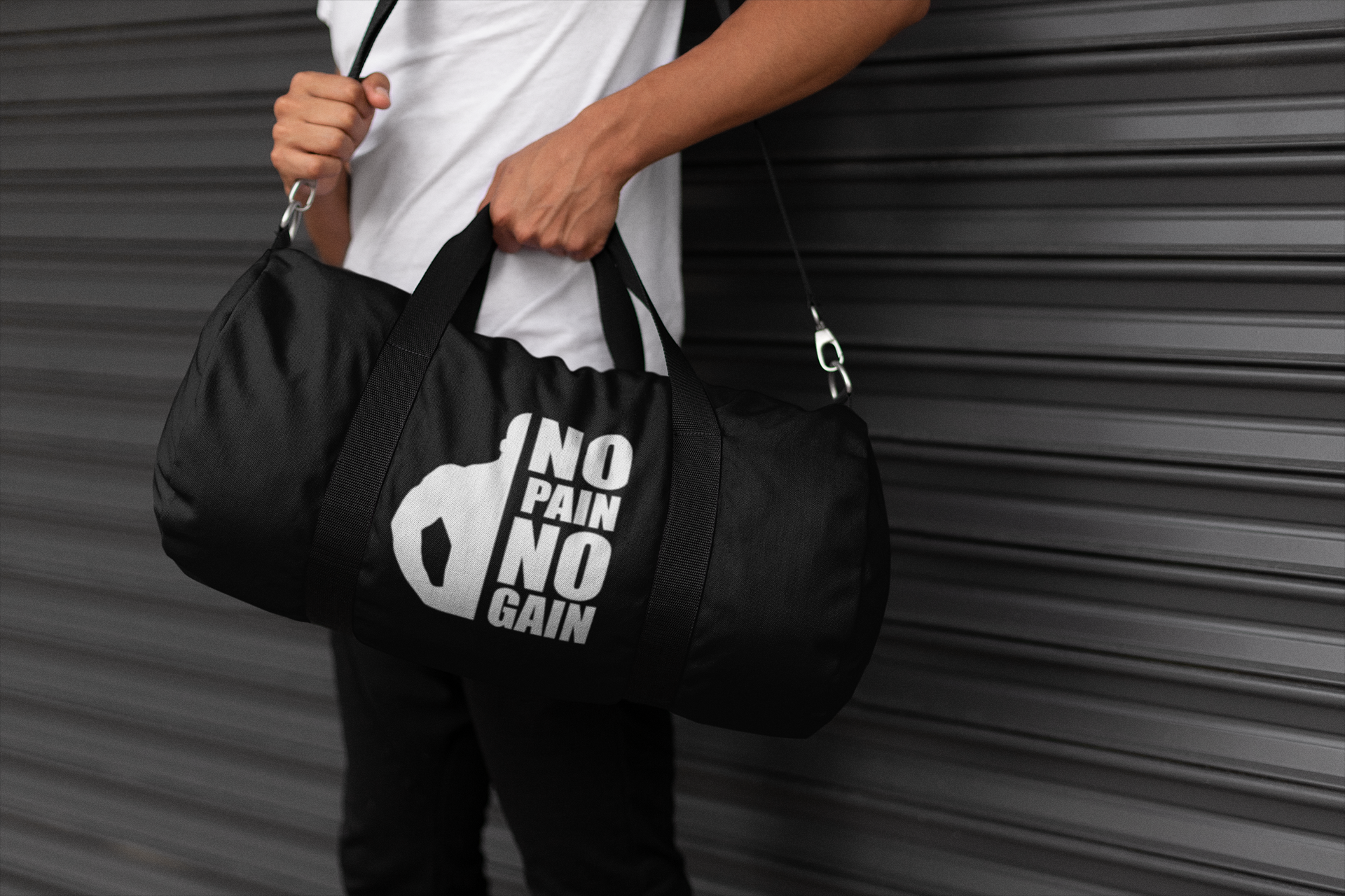 Motivierende Sporttasche mit "No Pain No Gain" Aufdruck. Hochwertiges, strapazierfähiges Material. Geräumiges Design für Sportausrüstung und Kleidung. Bequemer Tragekomfort mit verstellbaren Schultergurten und Tragegriffen. Bestellen Sie jetzt und lassen Sie sich von dieser inspirierenden Botschaft begleiten! Ein ideales Geschenk für Fitnessbegeisterte und Sportler.
